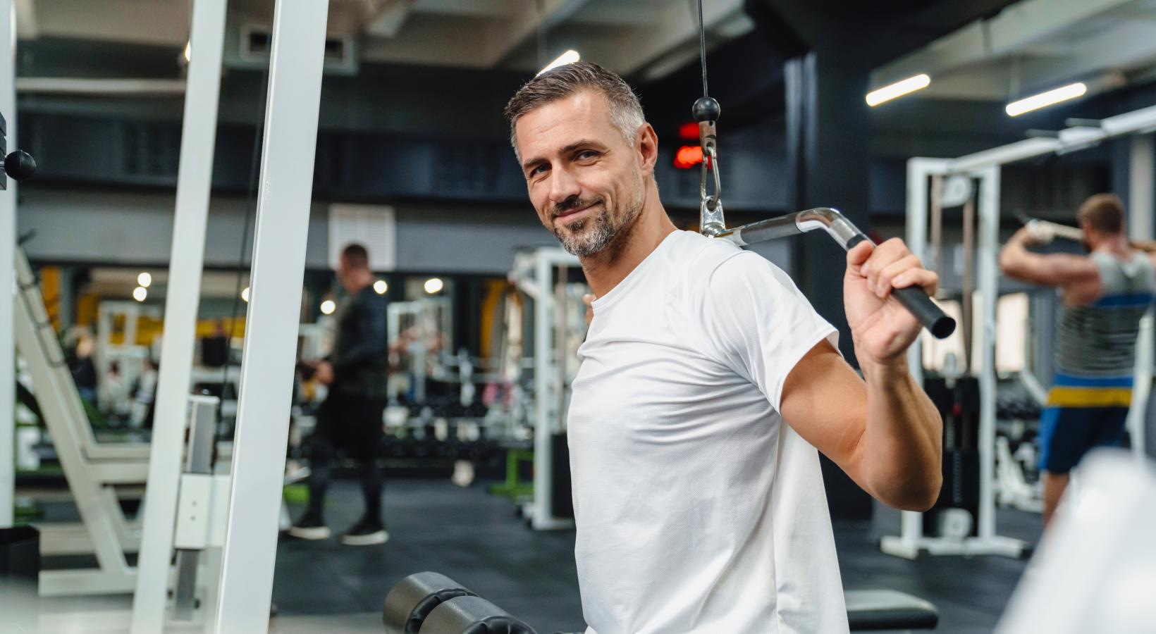 • a man lifting weights in a gym