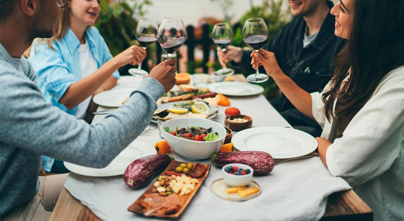 • a group of people having a meal around an outdoor table